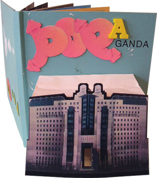 The Popaganda pop-up book was completed in 1996. It was one piece in a body of work that used satire and illustrated motifs to critique the ascendant global corporate power in a spirit that is now commonly understood as 'detournement'. The book was intentionally produced as only one copy.