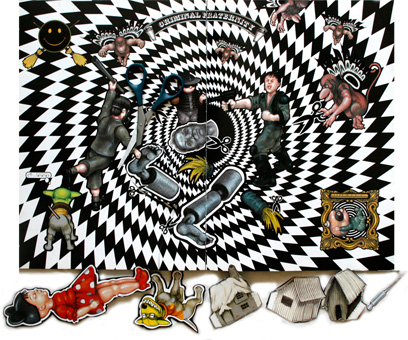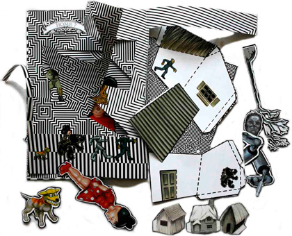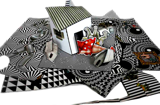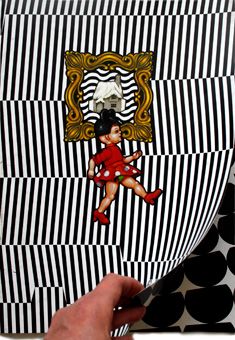 A Rootless Cosmopolitan’s Guide to Home-hunting is an illustrated commentary on the Wizard of Oz story. It centres on Dorothy’s perilous journey through Oz and her frustrated search for home. However, the publication is not a simple retelling of L.Frank Baum's original text. Instead, it is an ‘anti-book’ and employs devices that subvert common assumptions about the Oz story's content and form: the characters reference contemporary popular culture, there is no beginning, middle or end per se and the reader must destroy the book to complete it. It is designed to be complicated to read, and hence, underpins the heroine's central dilemma; Dorothy's search for the meaning of 'home'.